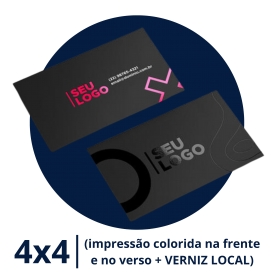 Aqui estamos falando de um material PREMIUM! Este cartão de visita é impresso em papel couchê de 300g, combinando alta qualidade e resistência. Com tamanho de 9x5 cm e impressão 4x4, ele traz cores vibrantes em ambas as faces. O grande destaque deste modelo é o verniz localizado, que realça informações ou sua logo de maneira sofisticada. Ideal para quem quer causar uma impressão inesquecível! Além disso, temos uma variedade de formatos e acabamentos disponíveis para atender suas necessidades de personalização.